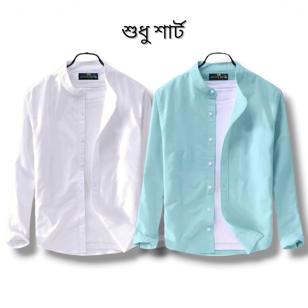 Long Sleeve Band Collar Shirt_