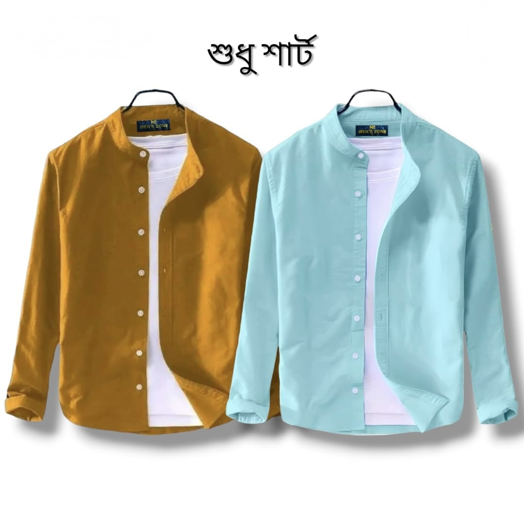 Long Sleeve Band Collar Shirt_