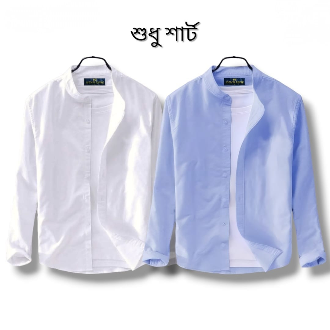 Long Sleeve Band Collar Shirt_