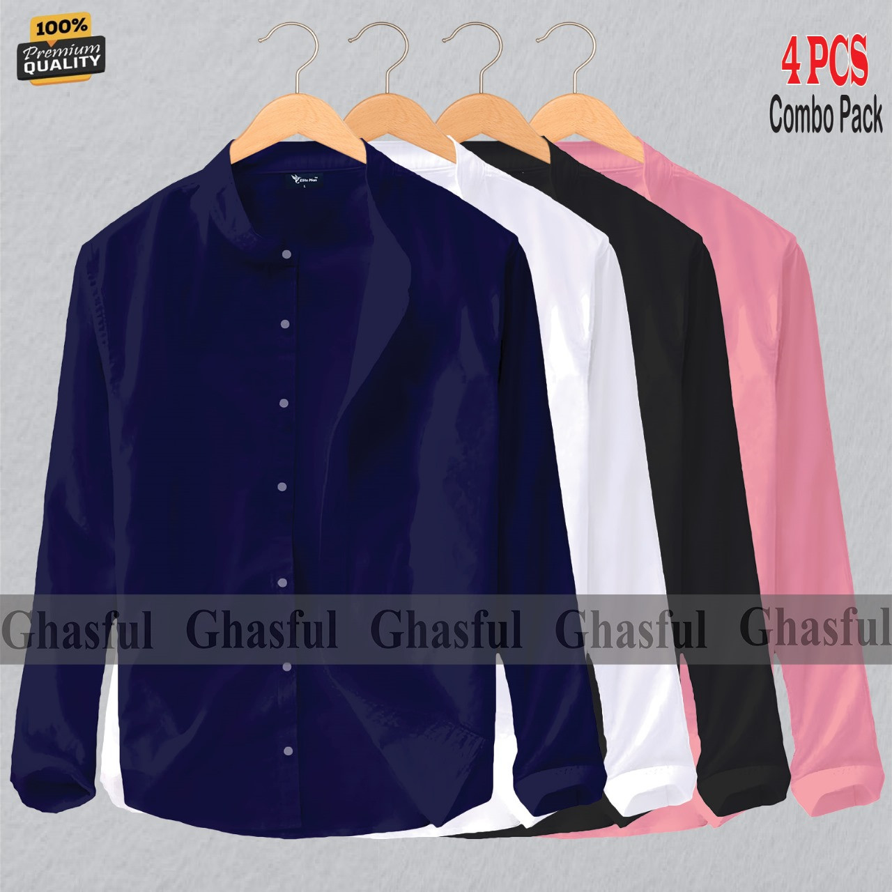 Long Sleeve Band Collar Shirt_ NAVY BLUE, WHITE, BLACK & PINK.