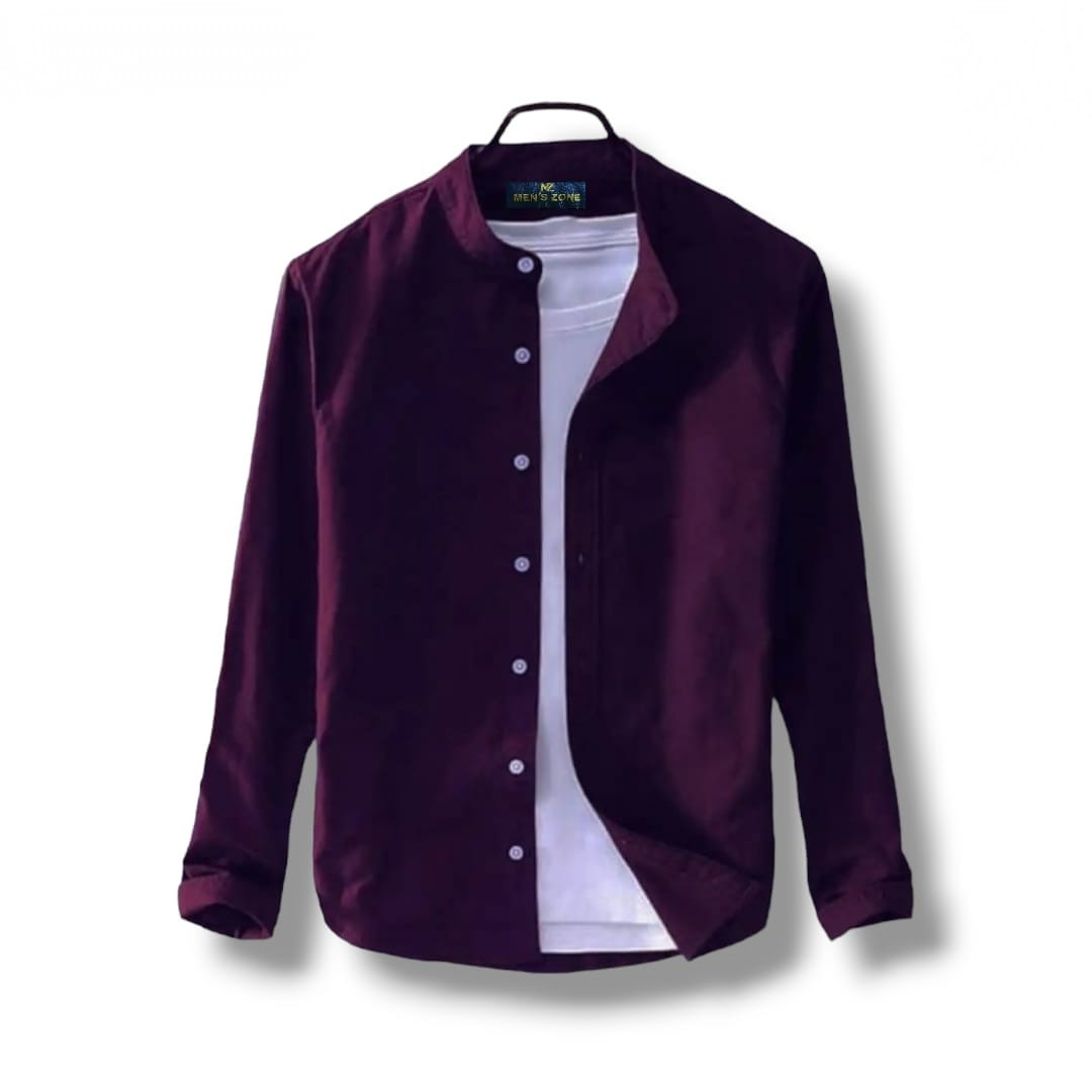 Long Sleeve Band Collar Shirt_ PURPLE.