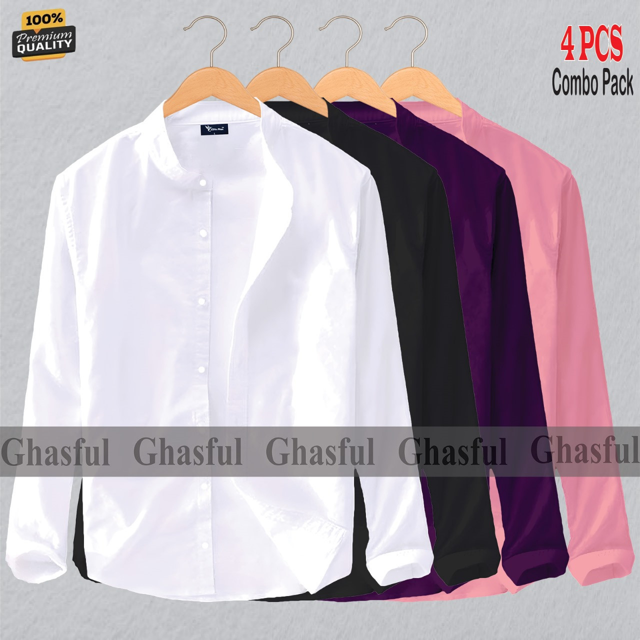 Long Sleeve Band Collar Shirt_ WHITE, BLACK, PURPLE & PINK.